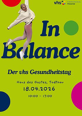 Gönnen Sie sich einen Tag ganz für Ihre Gesundheit, Bewegung und innere Balance. Beim Workshop-Tag „In Balance“ erwartet Sie ein abwechslungsreiches Programm mit kurzen Workshops und Vorträgen rund um die Themen Bewegung, Entspannung, Körperbewusstsein und Wohlbefinden.